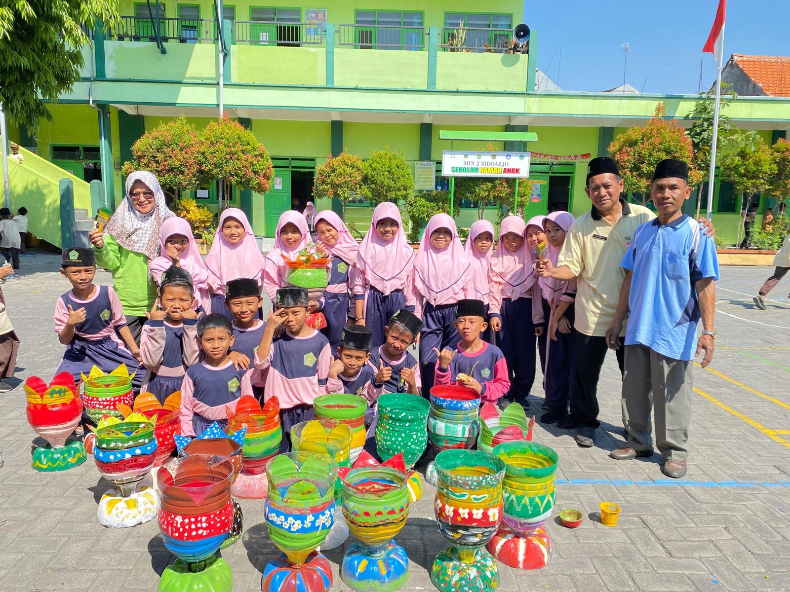 MI Negeri 2 Sidoarjo – Kreativitas siswa-siswi kelas 3 MIN 2 Sidoarjo patut diapresiasi. Sebanyak 88 siswa berhasil menyulap galon bekas menjadi pot bunga cantik dalam kegiatan Projek Penguatan Profil Pelajar Pancasila (P5) yang digelar pada Jumat, 26 September 2025.