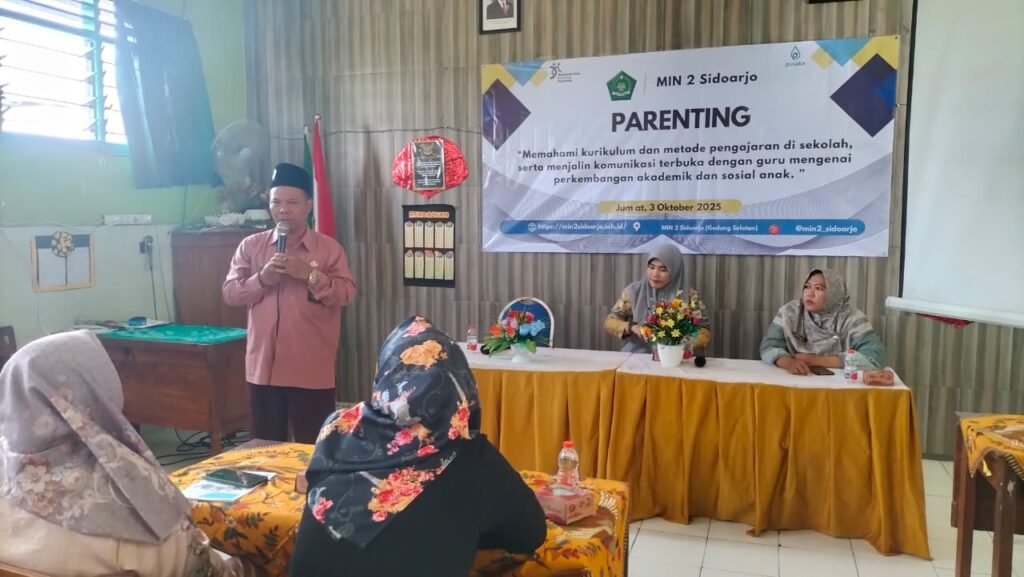 Sidoarjo – MIN 2 Sidoarjo mengadakan kegiatan Parenting bagi wali murid kelas 1 pada Jumat, 3 Oktober 2025, bertempat di Gedung Utara MIN 2 Sidoarjo. Kegiatan ini diikuti oleh 112 wali murid dengan antusias.