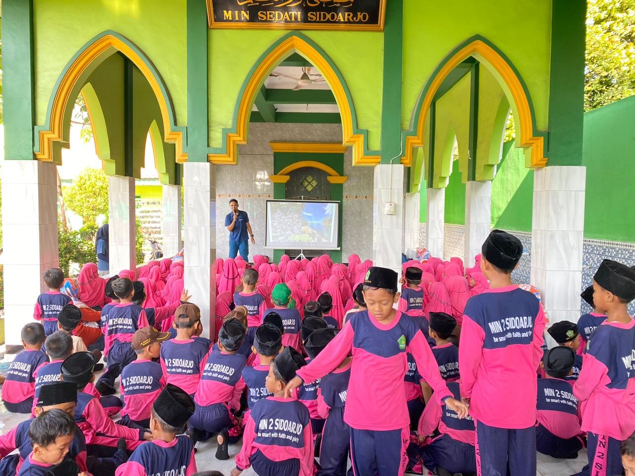 SIDOARJO – Suasana di serambi MIN 2 Sidoarjo mendadak riuh rendah, namun penuh semangat pada pagi tadi. Ratusan siswa yang mengenakan seragam olahraga berwarna merah muda tampak antusias mengikuti sesi edukasi lingkungan yang dibawakan oleh tim relawan Sungai Watch Sidoarjo.