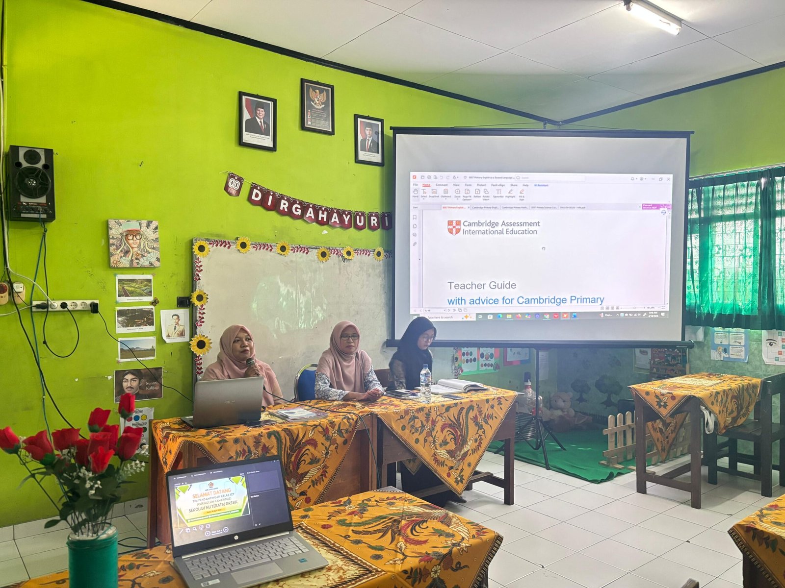 Visual dari kegiatan ini menunjukkan antusiasme yang luar biasa. Dengan bantuan perangkat teknologi dan materi yang komprehensif, para pendamping memaparkan metode Teacher Guide yang efektif. Gelak tawa sesekali pecah di tengah diskusi serius, menandakan hubungan yang harmonis dan suportif antar kedua lembaga pendidikan ini.
